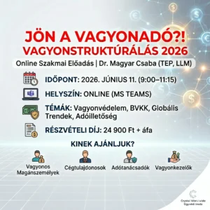 Noha a hazai vagyonadó végleges szabályai még nem ismertek, már most ajánlott felkészülni. A növekvő vagyoni egyenlőtlenségek, a költségvetési nyomás és a globális minimumadó logikájának terjedése mind abba az irányba mutatnak, hogy a nettó vagyon adóztatása itthon is hamarosan bevezetésre kerül. A nemzetközi tapasztalatok vegyesek: míg egyes országok (Spanyolország, Svájc) alkalmazzák, addig sokan (Svédország, Németország) teljesen elhagyták azt. A háttérben gyakran az alacsony költségvetési hatékonyság, a tőke elvándorlása és az értékelési problémák állnak. A vagyonadó ugyanakkor nem csupán fiskális eszköz: komoly hatással van a vagyontervezésre, a nemzetközi struktúrákra és az adóilletőség megválasztására is. Az előadás célja, hogy tiszta képet adjon egy sokszor félreértett, de egyre aktuálisabb adónemről és gyakorlati szempontból mutassa be a lehetséges következményeket és alkalmazható stratégiákat.